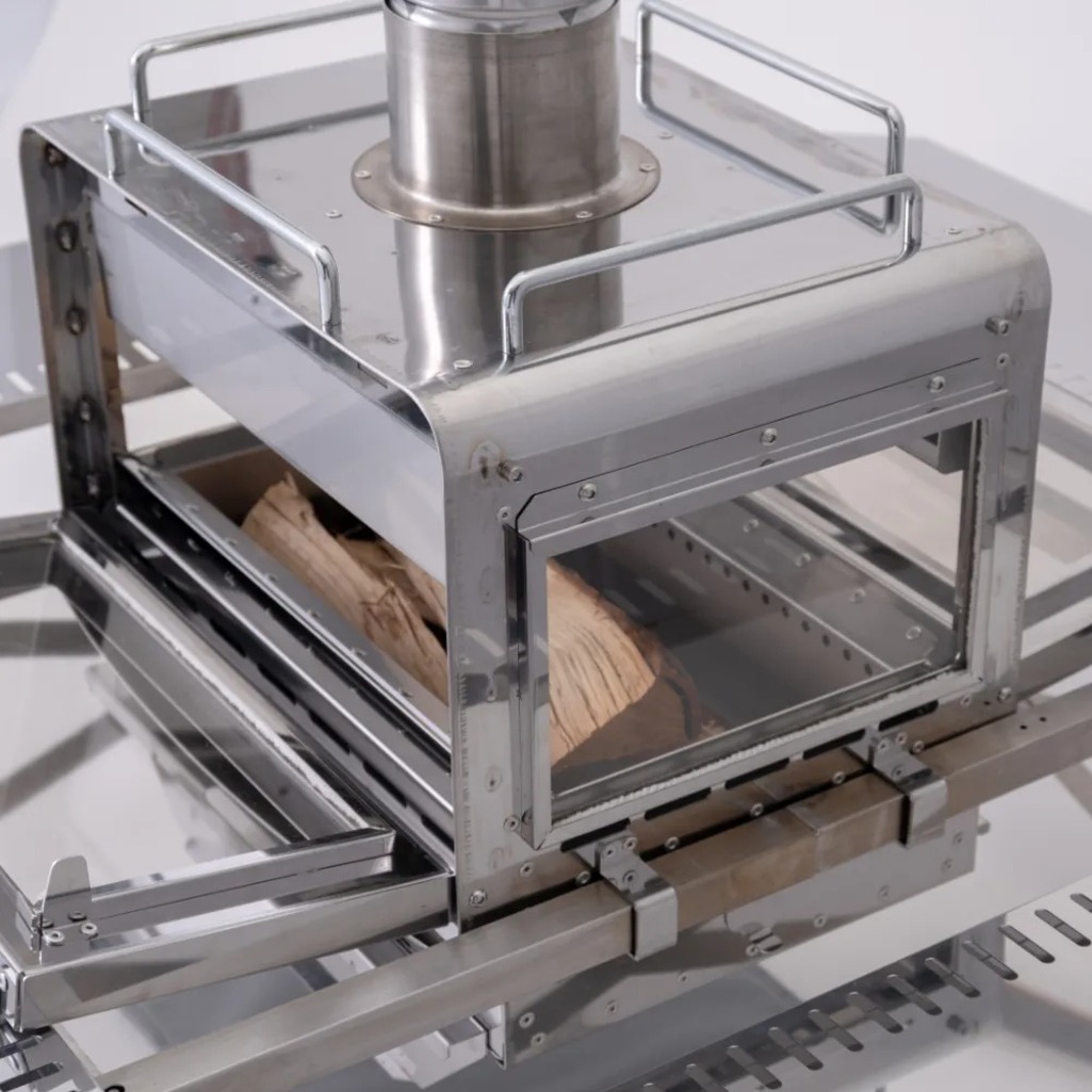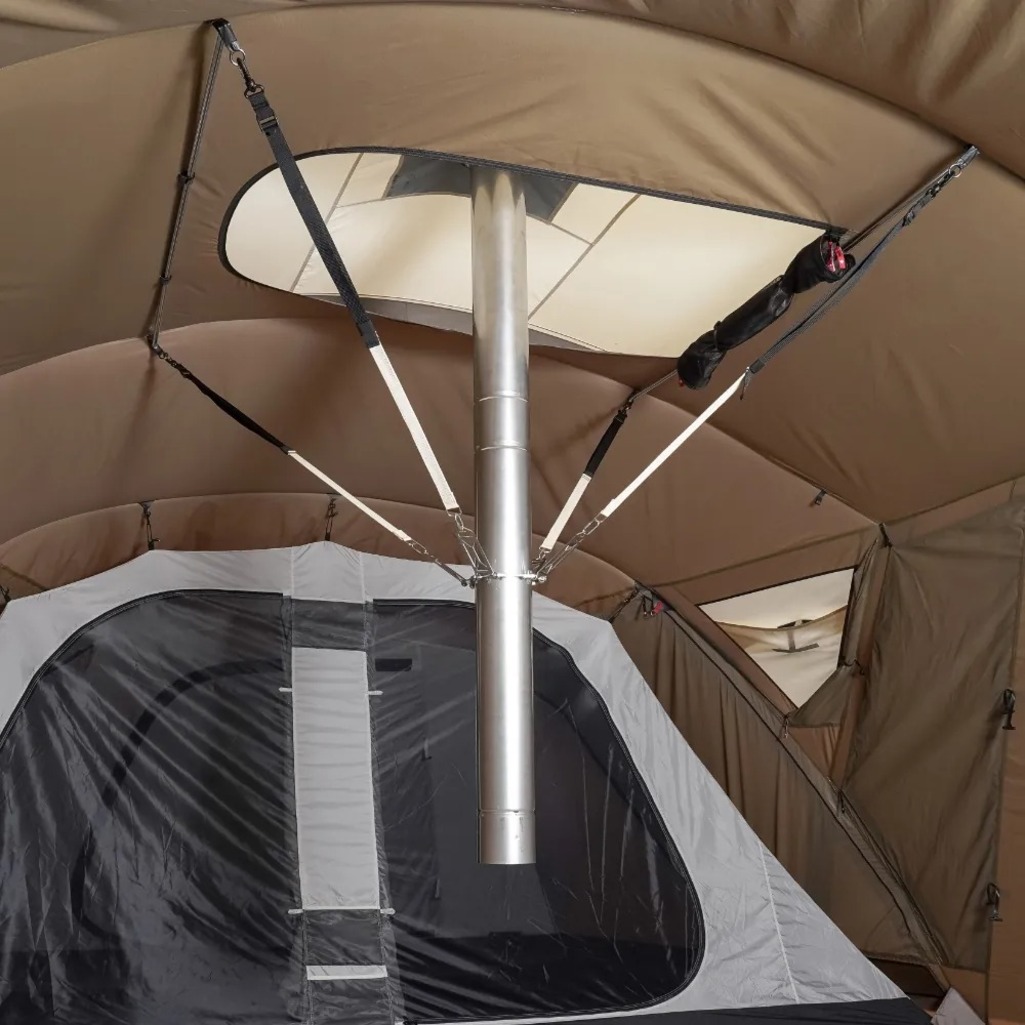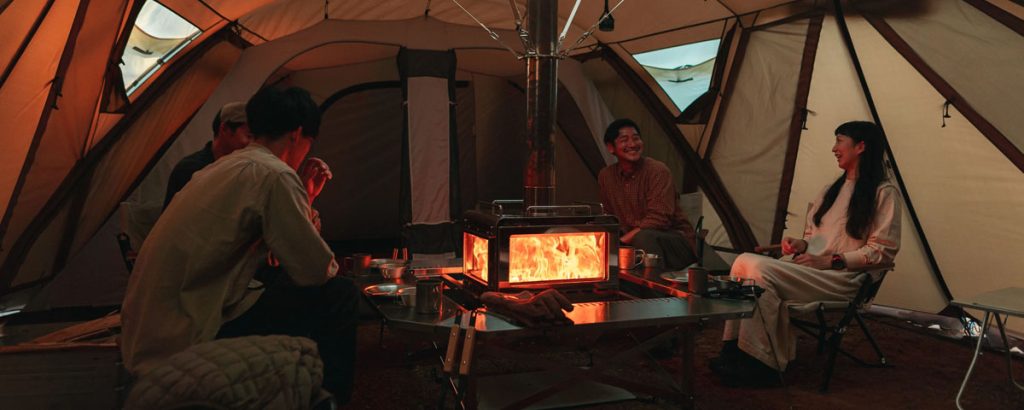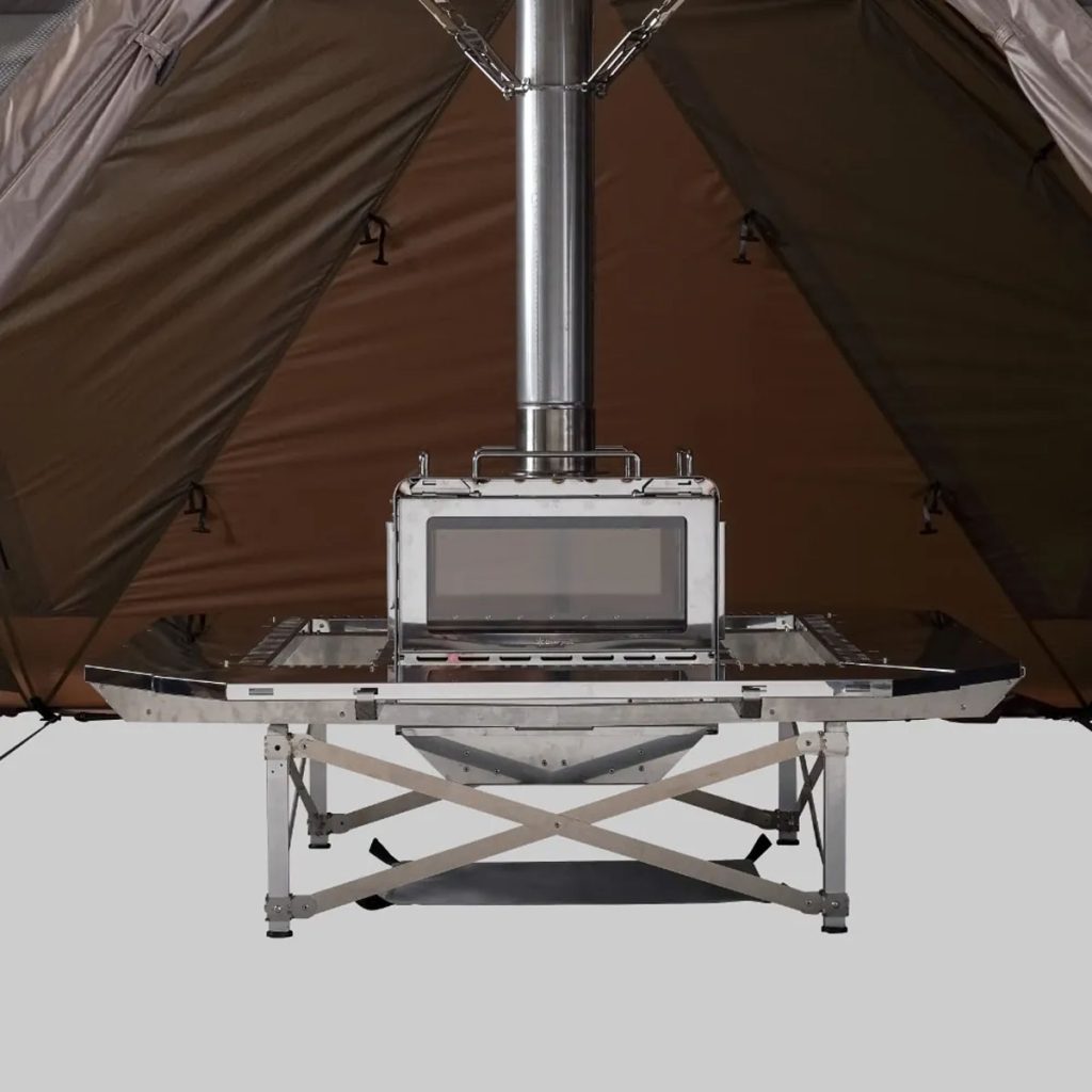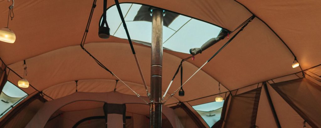 帳篷中央的燃木火爐,用鋼材和玻璃建成,比人手搭的爐灶,傳熱更好更企理,亦可供 360 度細賞火光搖曳,而煙囪亦以四條室內繩子鞏固拉力,以防倒塌,外部無線也減少絆倒危險。營內附設一氧化碳檢測器,時刻檢測空氣品質及照明。品牌甚至細心提供「營前培訓班」教授營具使用心得,大家將可更舒心地圍爐取樂。