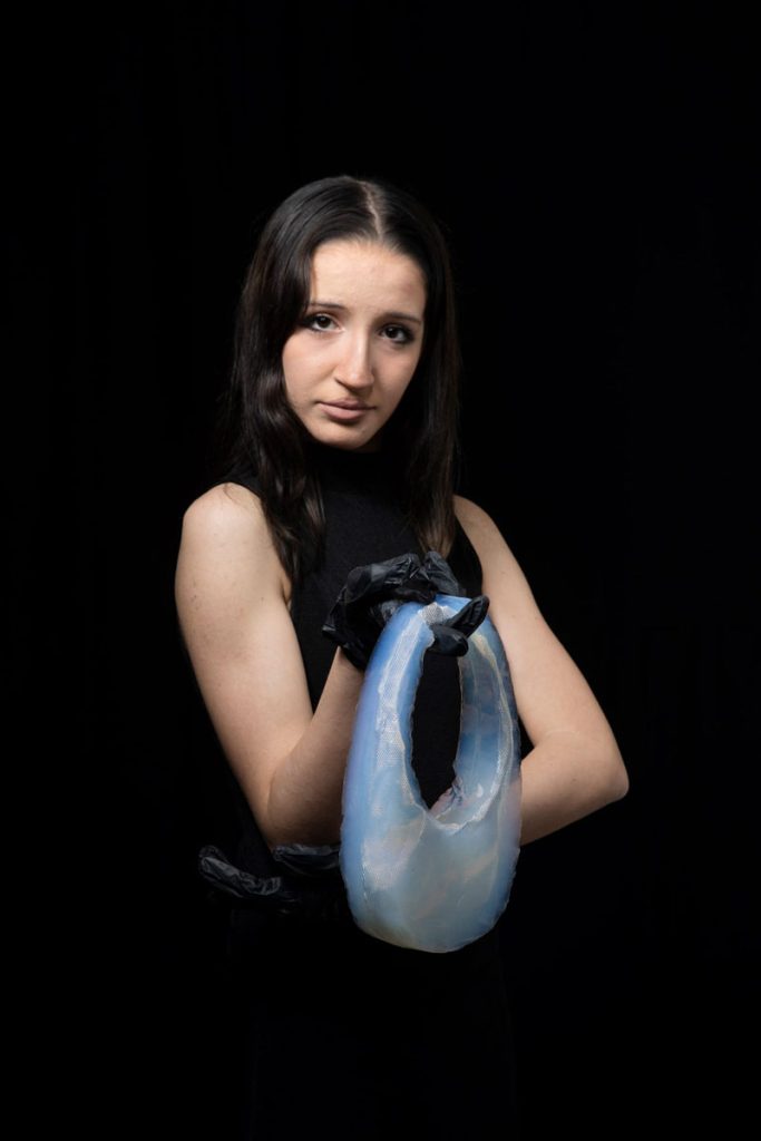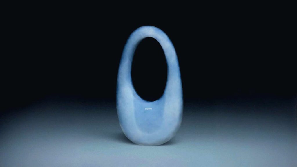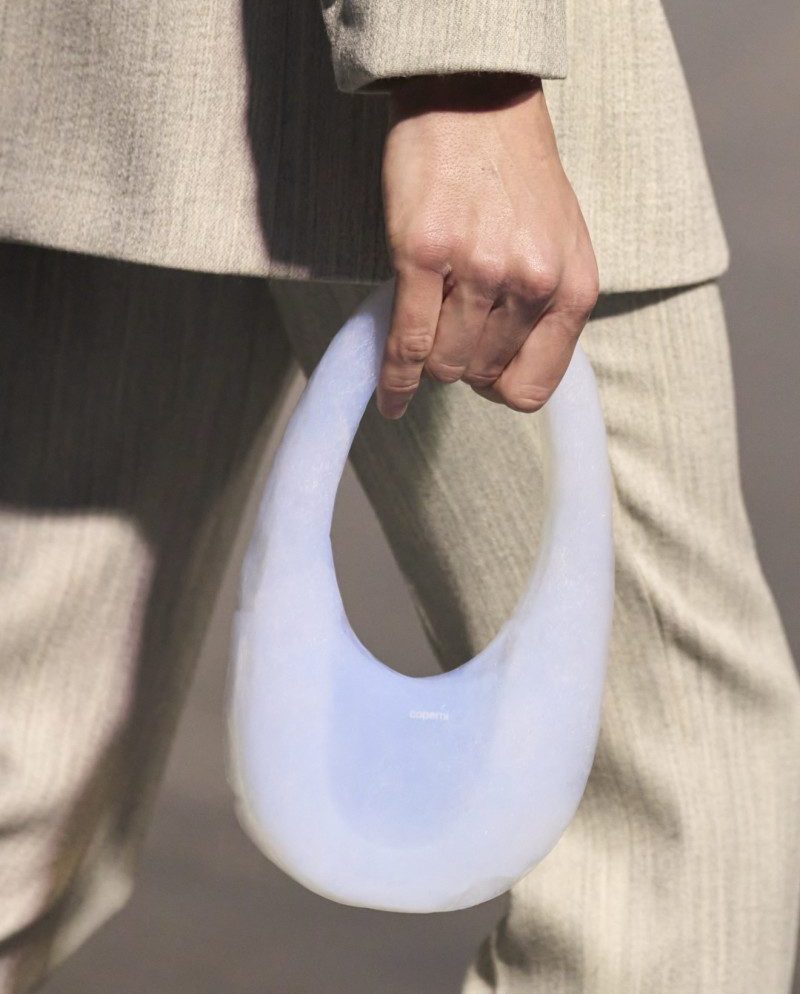 今次 Coperni 將創意推向極致,攜手當代藝術與科學領域領導者之一 Ioannis Michaloudis 教授,運用對方為美國太空總署 NASA 研發的高端納米材料「二氧化矽氣凝膠」,取其物料為地表最輕的固體,可承受極熱和高於其重量 4000 倍的壓力,曾被用來收集星塵的「宇宙級」堅硬及通透特質,製作成包包的外殼,再於內部注入呈奶白雲狀的空氣,重量僅 33 克。