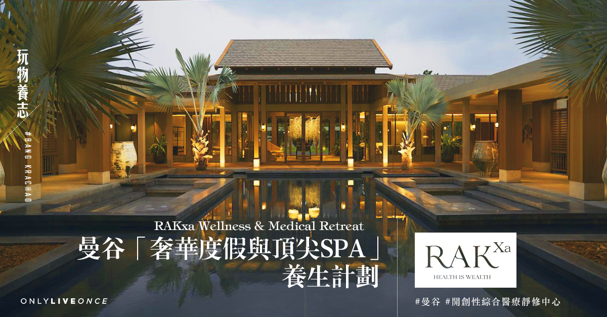 RAKxa 由當地住宅開發商 M.K. Real Estate、Minor 飯店集團以及康民國際醫院Bumrungrad International Hospital 聯手開發,位處邦喀造的森林半島之上,被翠綠茂密的巨樹與芳草包圍,如夢幻仙境。中心共有 60 座私人別墅和兩套湖畔公寓,包括專為深度睡眠而設計的 Garden Villa 及方便晨間瑜伽及游泳的 Pool Villa,旅人必須連續入住至少 3 晚,每晚房價為每人 2,000 美金起,即平均住一趟需 6,000 美金起跳。