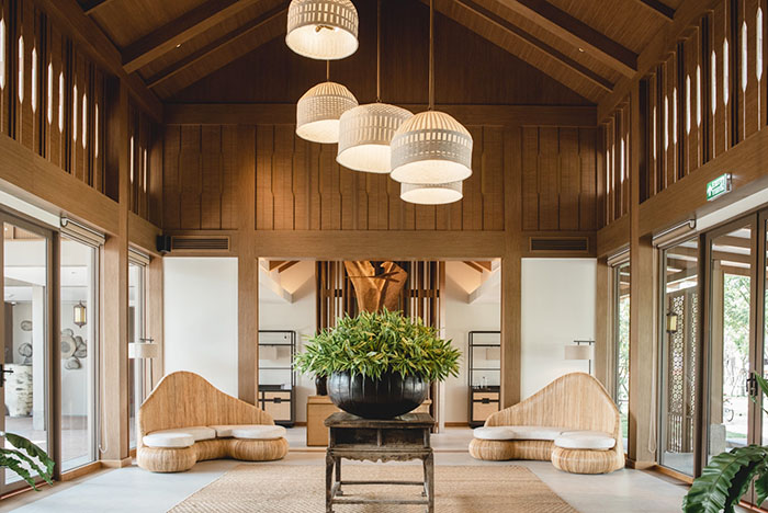 中心還強調療癒哲學,不但於建築空間採用柔和素色為主調,配上藤竹、陶土、黃麻、桑皮紙和水葫蘆等在地材料製作的傢俬器物,讓來賓的身體獲取舒適享受;照顧聽覺體驗,還請來知名音樂人 Paul Sirisant 創作一系列雙聲道背景音樂,以悠揚旋律治癒五感;旅人亦可於 Unam 餐廳,品嚐到全天供應、新鮮有機的地中海風格佳餚,這些食品集「營養、自然、季節性和可持續性」四大要素,有助避免發炎與過敏症狀。