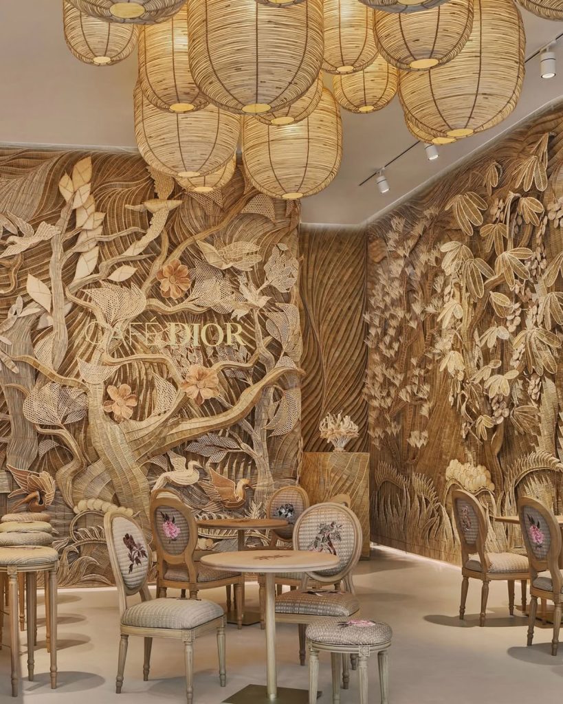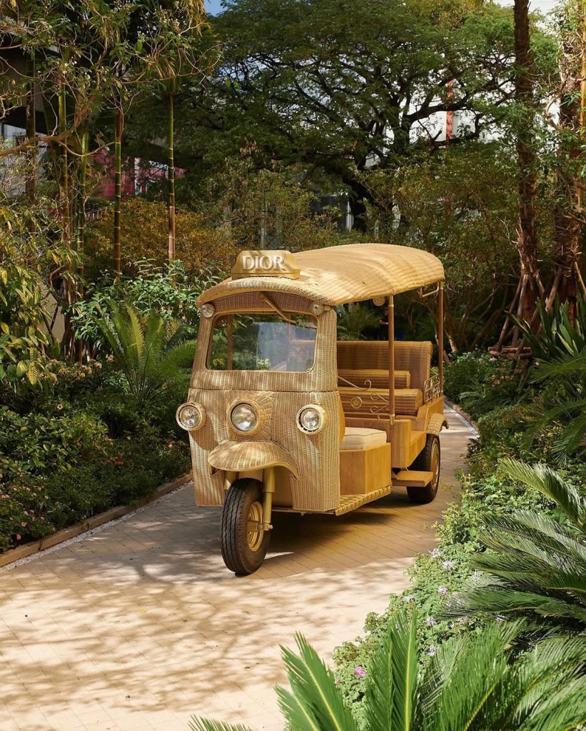 店內又展示多位泰國藝術家佳作:建築師 Boonserm Premthada 以大象足印裝置傳頌對自然的崇敬,鬼才設計師 Saran Yen Panya 以編織重新演繹曼谷 Tuk-Tuk 車,Vassana Saima 和 Savin Saima 以傳統花藝合創竹製 Lady Dior 手袋等,體現卓越工藝。