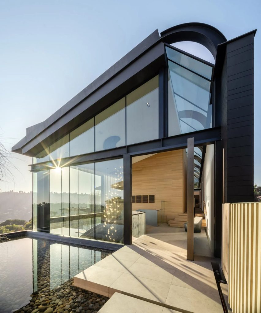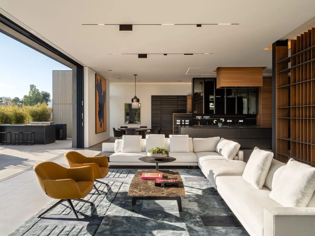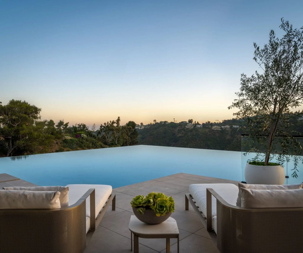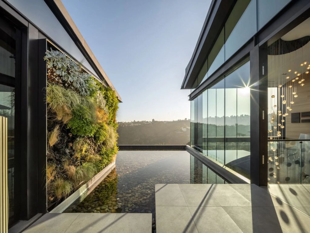 莊園座落的「1859 Bel Air Road」,是洛杉磯名流商賈匯聚的超豪華地段,全建築共花 7 年建成,並於市場上以高達 6,800 萬美元銷售。其佔地 2 萬平方英尺,主體外觀呈簡潔曲線及幾何形狀,用巨幅玻璃包裹四邊,仿如一艘飄浮在半空的宇宙船,獲業界譽為「1859 現代主義奇蹟」。居室入口那道由鋁和鋼特製的螺旋樓梯,定錨其前衛氣派,三層樓內又分別設有下沉式開放廳堂、9 間臥室,12 間各備浴缸、蒸汽淋浴和雙梳妝台的浴室,加上 TechnoGym、酒廊、無邊泳池及水療中心等,還有 Giraldo 親自挑選的高訂家具,絕對可滿足一切起居和娛樂需求。