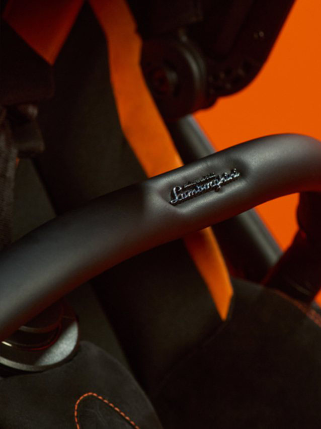 嬰兒車的所有配件,亦經重新設計和精心改良,譬如附有推車、嬰兒提籃、直背式座椅、腳套、推車雨罩、遮陽罩、透明罩、杯架等 9 件完整配備;提籃用網狀聚碳酸酯製成;車把和腳踏板均為手工製作,後者更模仿了超跑的煞車踏板型態;嬰兒車 Y 型結構,又以林寶堅尼跑車的標誌性 Logo 作為固定點,符合人體工學嬰兒車技術等,以確保父母及寶寶在不同情境下,仍然可以獲得實用、安全且舒適的體驗。