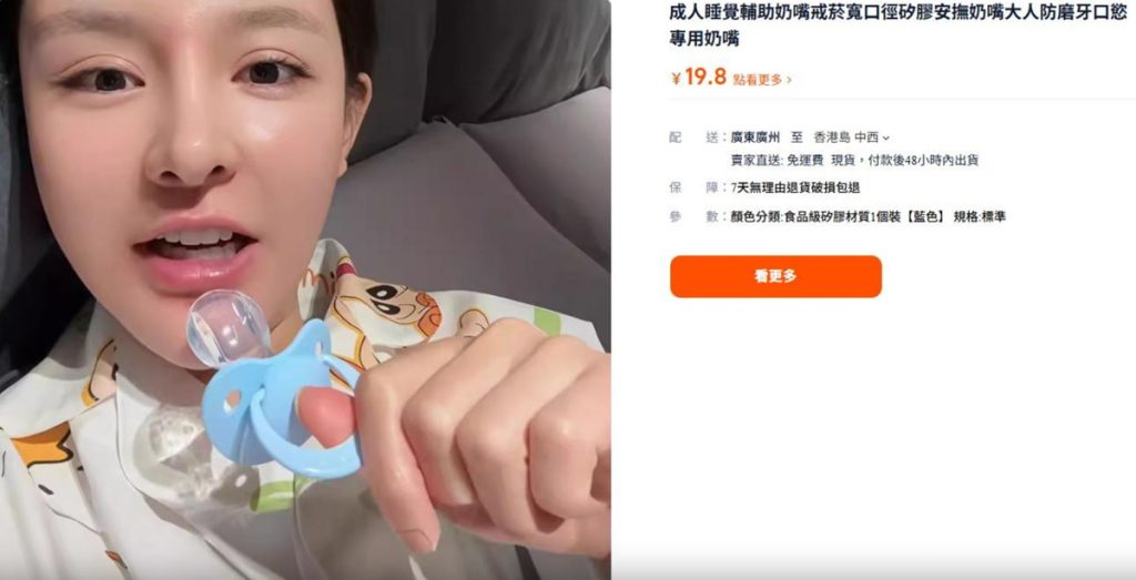 近來內地興起一股「成人安撫奶嘴」風潮,一位 GEN Z 女生在網上分享自己當感到工作壓力很大時,便會含著奶嘴讓她「回到嬰兒時期的安全感」,迅即引發廣大網民共鳴,相關影片點擊率突破兩億次,甚至有電商專門售賣成人安撫奶嘴,標榜可以緩解焦慮、改善睡眠、甚至可以戒煙。