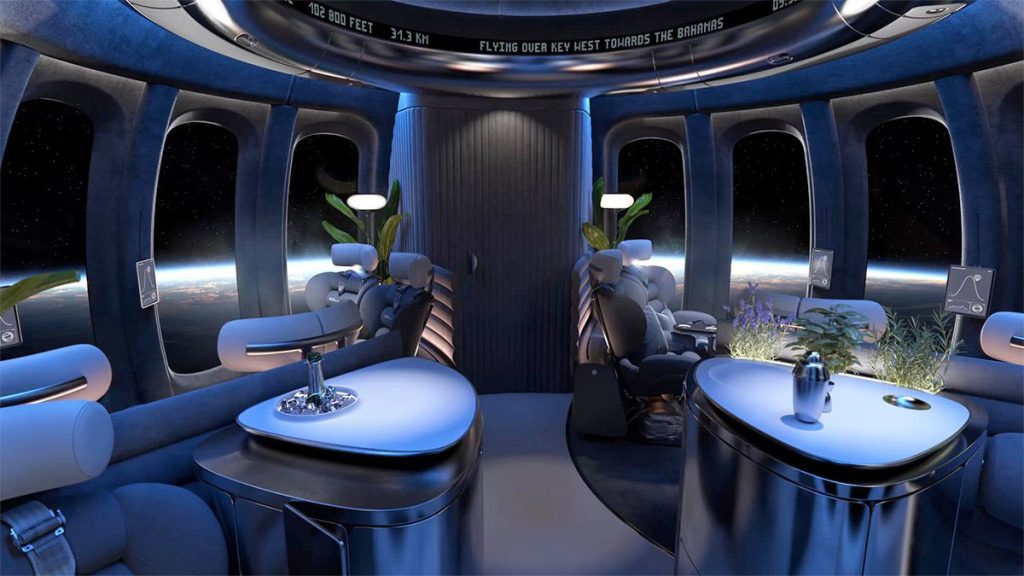 使旅客盡興,Spaceship Neptune 最多可容納 1 位船長和 8 位乘客,寬敞的客艙空間亦設有舒適的座位、休息室、餐區、吧台、衛浴和各類休閒娛樂設施,大家亦可隨心情調節室內燈光,一邊營造迷幻氣氛,一邊透過全景窗的艙體 360 度飽覽太空絕景,獲取震撼心靈的頂級體驗。