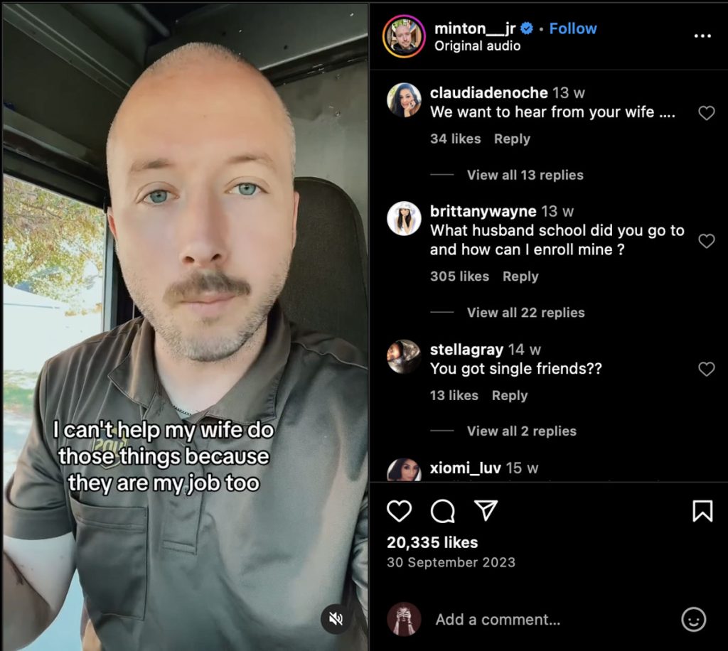 「我絕不會幫老婆煮飯、做家務和湊仔的啊!」美國素人男網民 J.R. Minton 發表的「不幫太太」影片宣言,乍聽滿是「典型大直男」的況味,但其實一秒激嬲另一半?這番話實際別有寄意。