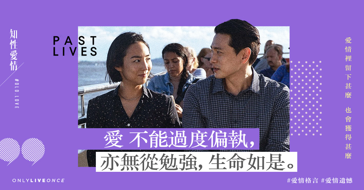 只能意會的情緒,恰被美籍韓裔導演宋席琳 (Celine)呈現於電影《從前的我們》中。Celine 將自己作為移民,傷感告別青梅竹馬的經驗改編成影片,以 24 年時間線作背景,通過男女主角 Nora 和海星於「12、24 到 36 歲」三次相遇及離別,展示每個人各有願景與限制,談情難免有草率或猶豫時刻,關係即使有「愛」亦難避際遇變遷而無從廝守,彷如張愛玲小說常提到及的「回不去」及「抉擇」概念,叫人心酸。