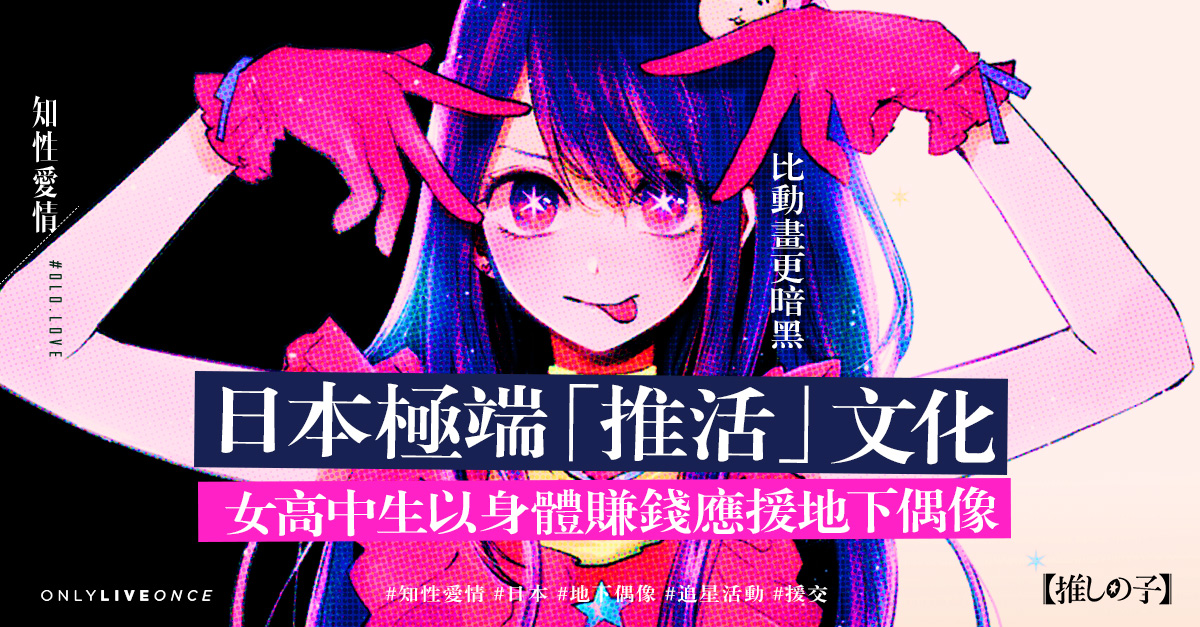 日本現象級動畫《我推的孩子》(推しの子)大膽詮釋演藝圈的殘酷與黑暗,也觸發社會正視「推活」(日語「推し活」,即追星活動)引發的問題,為地下偶像援交換金錢的極端狀況,最叫人心痛。
