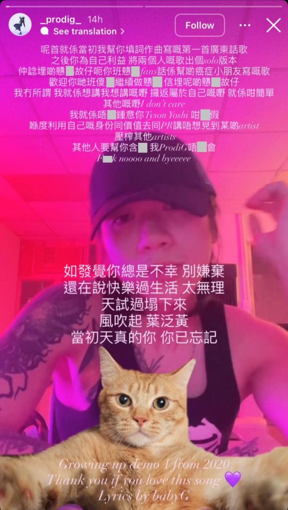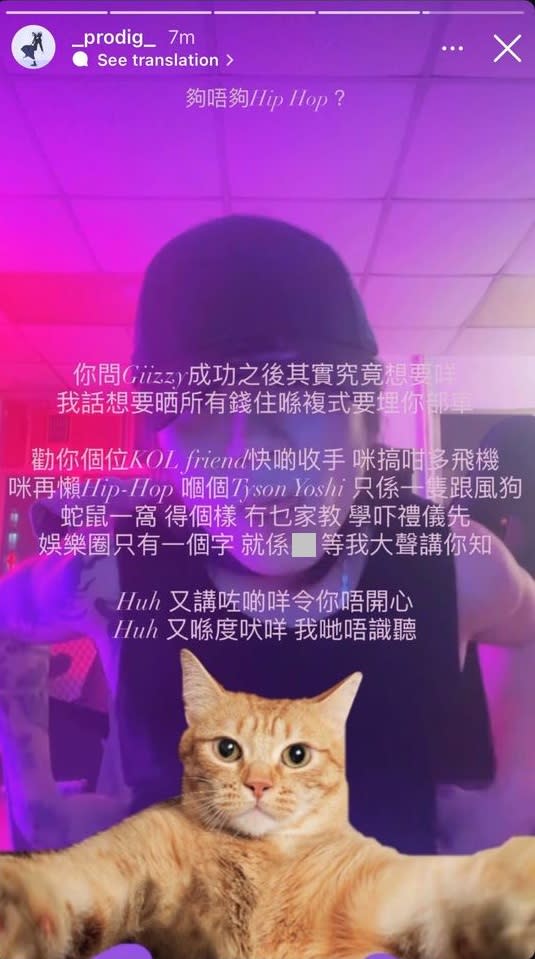 「Diss 來 Diss 去」在 Hip-Hop 界裡不新奇,但近日本地獨立 Rapper ProdiG 在 Instagram story 上載一段原創 Rap 短片,突然 Diss 另一位獨立 Rapper Tyson Yoshi 是「跟風狗」、「咪再懶 Hip-Hop」又「冇乜家教」,歌詞句句辛辣挑機,難免觸發一眾樂迷愕然及網民紛紛食花生——兩位到底發生過甚麼事?