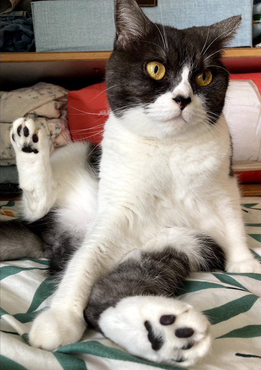 朋友上來玩,如果喜歡,便回頭蹭客人的腿;懶洋洋的話,連出來都不願。吐毛球的時候,更是把自己的快樂建築在我們的痛苦上,專揀床上和梳化等柔軟乾淨的位置。每次床的主人反著白眼清潔時,都不由得感歎,真會選地方,比醉酒佬嘔在的士要聰明得多。細妹曾弄鮮食給牠們,牠們也是全不理會人類的用心烹煮,舔了一口便退場,於是那個南瓜鷄胸肉蛋糕便變成人類(我)的運動後零食。