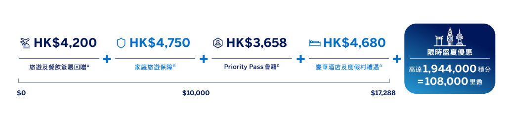 只需年費HK$9,500即可享限時夏日迎新獎賞及白金卡禮遇高達HK$17,288