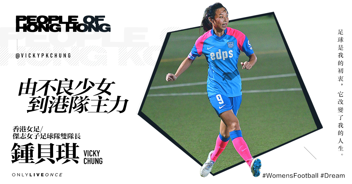 「足球是我的初衷,它改變了我的人生。」現年 24 歲的鍾貝琪(Vicky)是傑志女子足球隊雙隊長之一,亦是香港女足的主力。看著她在球場上揮灑汗水的努力身影,很難想像她曾經「壞過凱婷」,食煙飲酒講粗口,樣樣做齊。受到朋輩影響,運動天賦超群的 Vicky 於小學已經與足球結緣;然而升中後,她亦因結交損友而一度遠離足球,「那是我最反叛的時期,經常與壞朋友為伍,躝街不回家,撩事鬥非。」直到有次朋友當面取笑 Vicky 的聾啞母親,有如一記當頭棒喝,令她反思他們是否真正朋友。