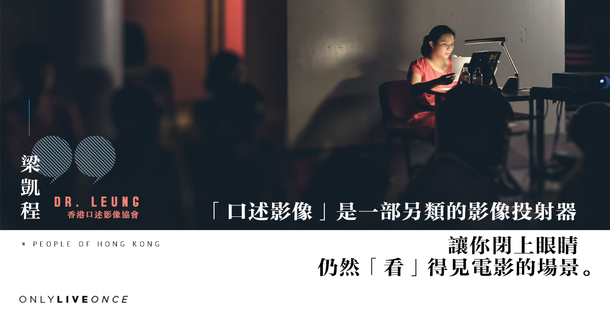 「口述影像」就是這樣的一部另類影像投射器,讓你閉上眼睛,仍然「看」得見電影的場景。Dr. Leung(梁凱程博士)於 2015 年成立了香港影像口述協會,致力推廣口述影像及培訓專業口述影像員,協助視障人士透過耳朵聽見世界的更多姿彩。