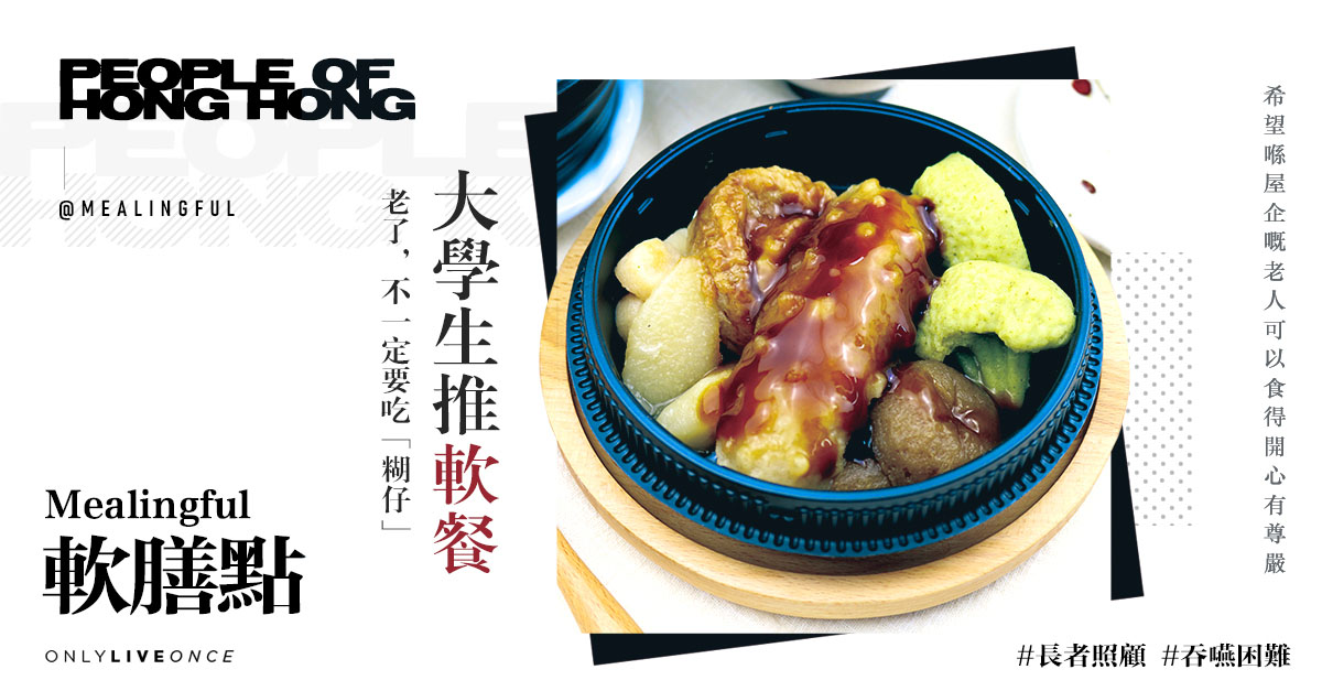 於是她們就與朋友 Jackson 及 Bianca 一同成立「Mealingful」,聯絡本地軟餐製造商,推出網上平台出售軟餐並提供送餐服務,打破只有大型安老院舍才買到軟餐的情況。「希望喺屋企嘅老人家都可以食得有尊嚴同開心,而非純粹為咗維生。」