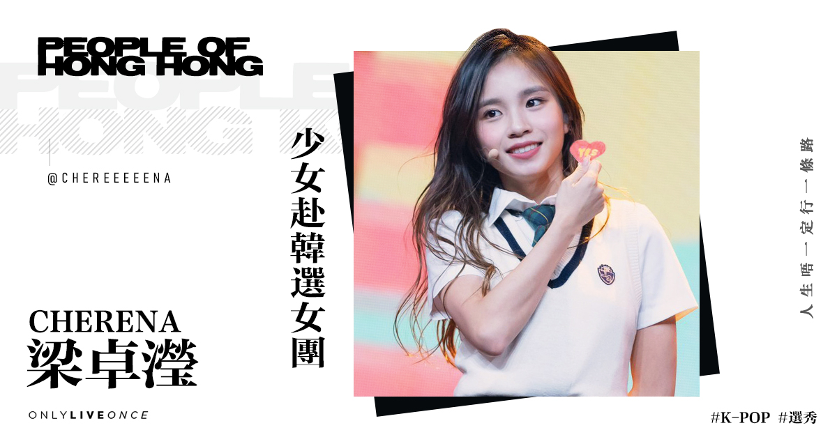 今年 24 歲的梁卓瀅(Cherena)從中學起就喜愛跳舞,也喜歡 K-Pop,於是當上韓國歌星就自然成為她的夢想。她雄心壯志寄履歷到韓國,最後卻石沉大海,大學畢業後的她唯有暫時將夢想放在一旁,踏入職場,營營役役地工作了兩年。