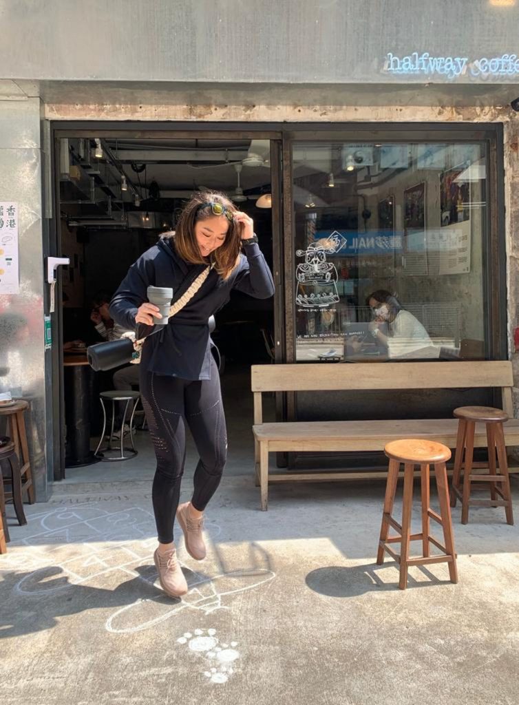 這運動狂迷,骨子裡有種活躍因子,言談爽快率直,滔滔不絕。談到最愛的運動,她笑說小朋友才做選擇:小學打球擲鐵餅;中學擔任領袖生,仍是一三五田徑,二四六體操;大學主修新聞系,困在舞蹈室的日子比剪片室的多;現在於體育慈善機構工作,也要晨運。總之停下來,就渾身不對勁,不容怠惰。