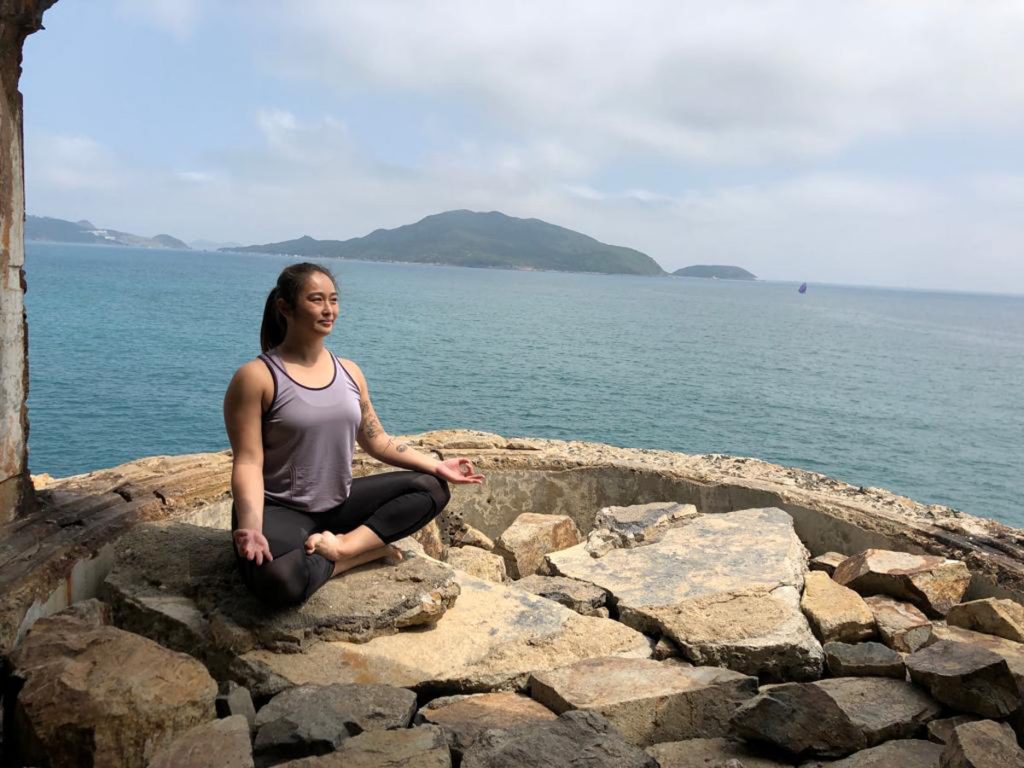 患病後,關節不再靈活,跑半馬也渾身疼痛,被逼放下三項鐵人等高強度運動。割捨,不等於放下。去年年末,她轉投瑜伽。當初她的認知很片面,以為不過是放鬆拉筋,只有嬸嬸貴婦才做,「穿得成隻雀咁,整件事很阿嬋」。直到深入其中,她始覺呼吸冥想,也是一門學問。