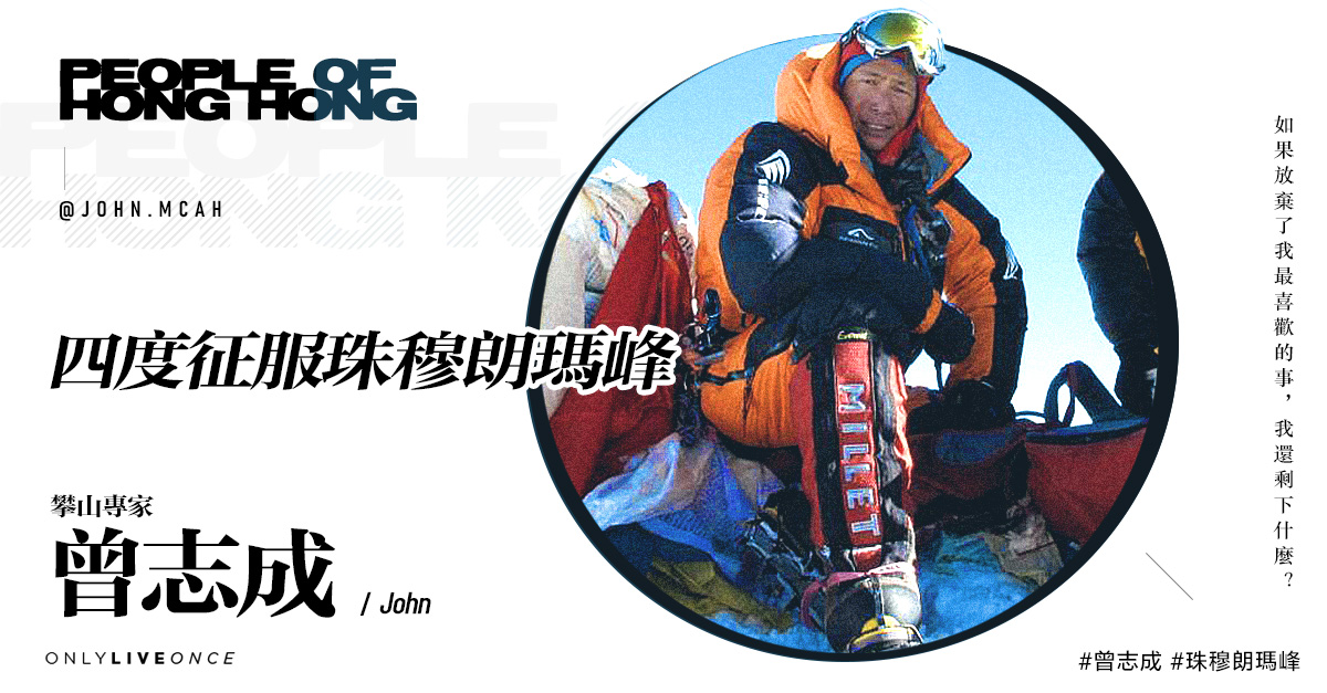 對有的人來說,爬山是辛苦的經歷,反覆受疲憊感折磨,卻始終未抵達山頂;但對四度征服珠穆朗瑪峰、成功登上世界七大洲最高峰的曾志成(John)來說,他很享受這種「折磨」,這種折磨讓他更認識自己,讓活出了他現在的樣子。