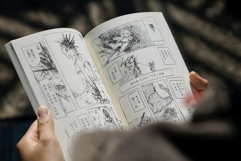她平日愛看紙本單行本,更堅持手繪,連全黑的背景都逐筆用墨水筆填滿。「所有嘢都由我畫出嚟,有種特別嘅粗糙感。紙本漫畫可以兩頁、兩頁咁去睇,感覺更加實在!」一直為漫畫夢而努力的她,終於以作品《實驗品家庭》成名。光看那成熟完整度高的日系漫畫風格,完全無法想象竟是出自香港人的手筆。