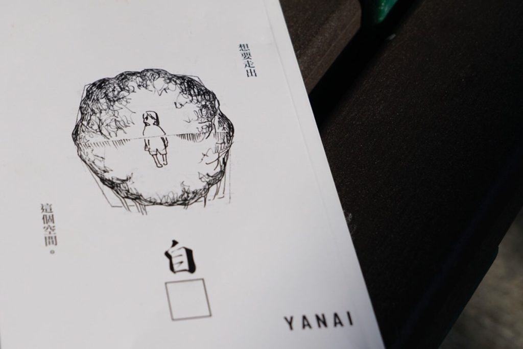 在一片歡呼聲的背後,Yanai 回到內在,面對無處可放的情感,「想話俾人知自己唔開心,但唔知點講。」於是 Yanai 決定回到紙上,以漫畫為語言,描繪內心的掙扎與盼望,成為新作《自□》。「未必人人明白我,但想透過漫畫話俾讀者聽:世上有人咁諗。」她溫柔的說,未來的她,只想繼續篤定地把內心吶喊投射紙上,一如專頁名稱「Barking Papers」。