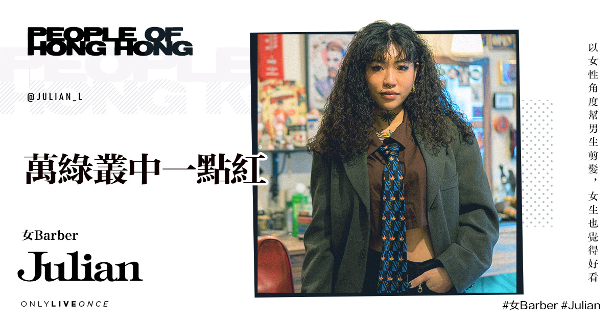 今時今日,男士們想剪個經典的油頭,除了走進一般的髮型屋,不少人都會選擇到專為男士理髮的 Barber Shop 剪髮。傳統的 Barber Shop 只為男士提供理髮和剃鬚服務,大多由男師傅操刀,但在土瓜灣橫街內的一間 Barber Shop,我們碰見了店內唯一的女 Barber Julian。