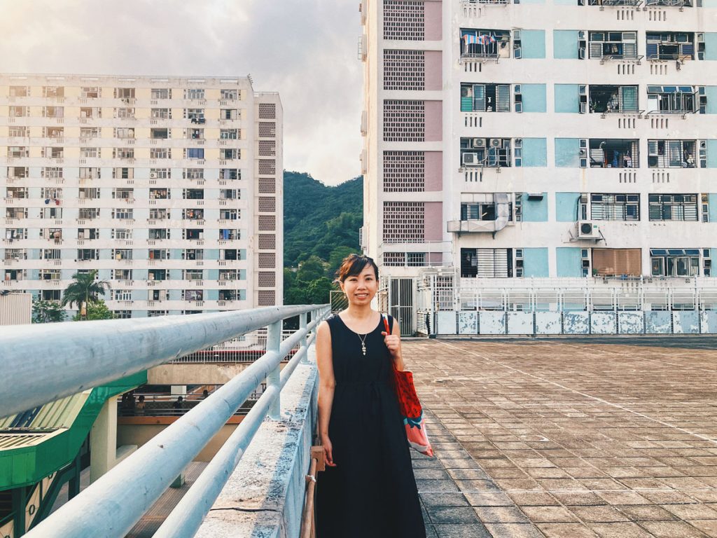 自小在逸東村長大的 Aiko,起初認為自己居住的屋邨毫無特色,樓宇設計一式一樣、密密麻麻,只是建屋計劃中的一個齒輪,所以她本來只打算到訪在建築設計上更有心思的舊式屋邨。直至有天,她來到調景嶺健明邨,發現它雖然同是一式一樣的樓宇設計,但原來屋邨裡面滿佈設計者的小心思,處處都在細訴調景嶺的歷史 —— 邨內有個四面鐘樓,原來是參照昔日調景嶺山上寮屋區的鐵皮屋設計而成;邨外有幅約 11 米高的石浮雕畫,繪出調景嶺的歷史與轉變。這些意想不到的收穫,令她發現只有親身走遍每個屋邨,才能在平凡中發現到不平凡,於是她下定決心,要做個「走遍全港屋邨的港女」。
