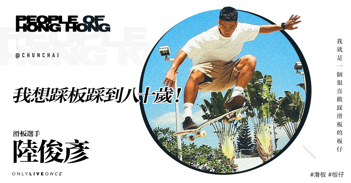 在香港的滑板界,「 陸俊彥 」這個名字無人不曉。贏過亞洲沙灘運會和全國賽第二,又是香港首位獲體院資助的滑板運動員,開創了香港板界的先河。只是,俊仔對這些都不太在意,「其實我從來沒想過要做運動員還是怎樣……但就算沒嬴比賽、沒有獲得體院資助,我也是會天天踩板,我就是一個很喜歡踩滑板的板仔!」