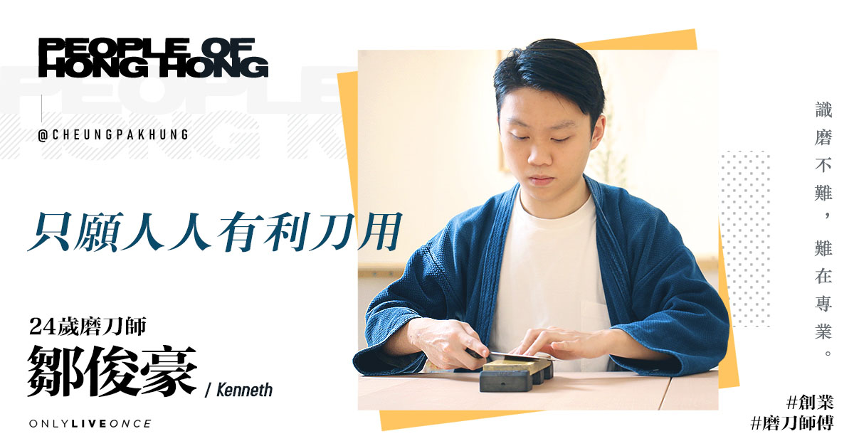 每次鄒俊豪(Kenneth)上門為人磨刀,對方都嚇一跳:廿歲出頭的𡃁仔,信不信得過?事實證明,無論鈍刀、崩角或生鏽,經他專心施法後都能起死回生,更不吝嗇將背後原理娓娓道來,形容詳盡而具畫面感,猶如解謎。