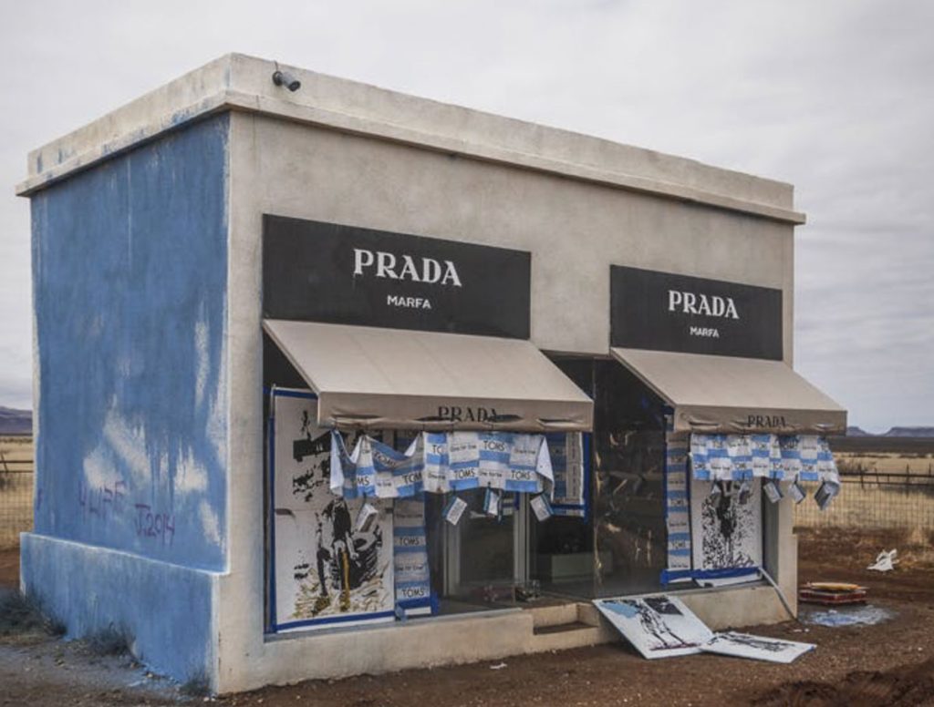 PRADA Marfa 詰問了甚麼?別看雕塑建於人煙罕至的 Marfa 小鎮,以為低調又安靜,這反向操作在過去十多年,實際吸引名人如 Beyoncé、KOL 和公眾來朝聖打卡,媒體曝光率比真實旗艦店還要高;到 2013 年,它又遭德州交通部質疑犯了公路美化法案,幸獲時尚藝術界和民眾設專頁和聯署才免被清拆;2014 年再惹德州藝術家 9271977 作挑釁式藝術、改造成 TOMS 門市。現象級地搶風頭,深刻反映時尚圈「看見與被看見」、「低調奢華」等矛盾。