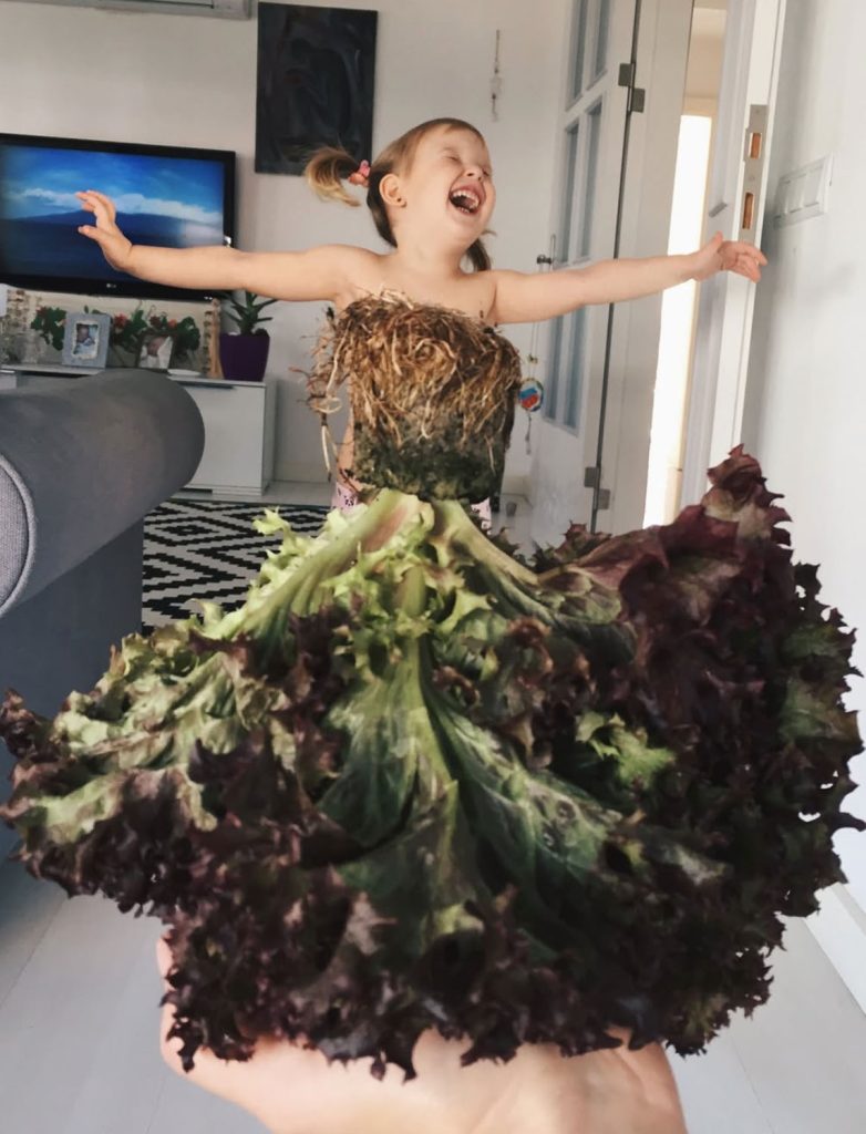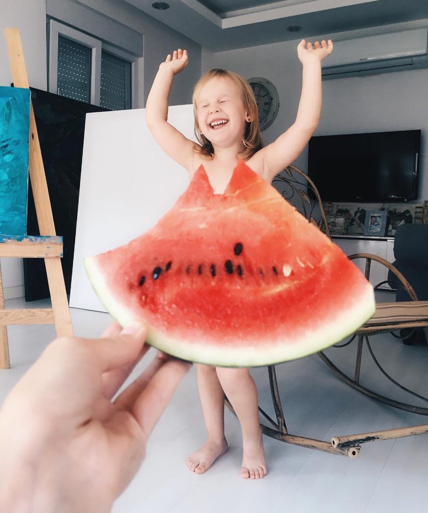 當代社會物質豐盈,不少新派父母主張「富養」孩子,惟土耳其藝術家 Alya Chaglar 認為單靠錢財推砌、欠愛心栽培,孩子成長終歸失衡,故她不用奢侈名牌討好女兒 Stefani,而是妙用創意將花朵、蔬果或日常百物為靈感,結合「錯位攝影」(Misplaced photography)成「低成本扮裝」(Low-cost Cosplay),共創美好的親子回憶,也追求精神富足